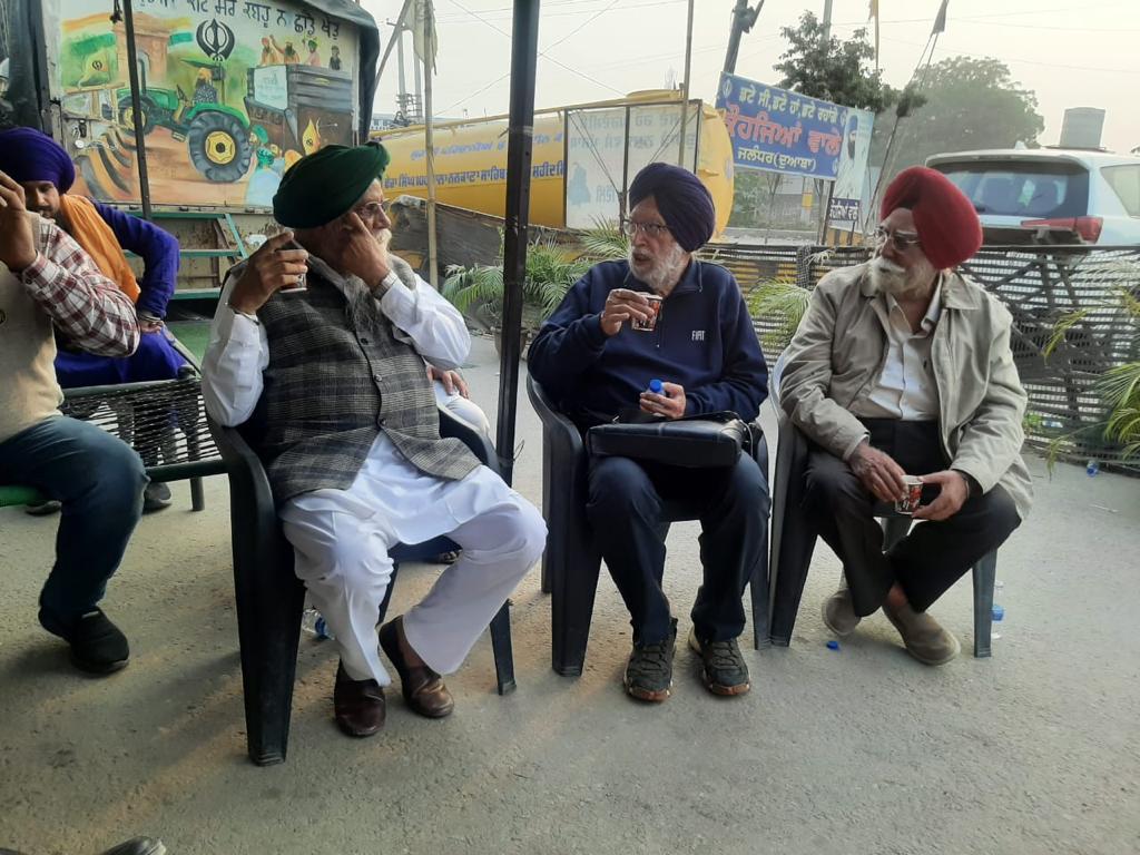 As the bugle sounded, we all did well to wake up to the struggle and join in. We went to Singhu border with our offering of support in various ways and spoke clearly in their favour – from stages of farmers, through seminars, talks on social media, interviews and whatever was possible and was within our means. Veterans (Brigadiers and Colonels) joined the struggle and so did retired officers of various civil and uniformed services. We had Sardar J. S. Toor’s book on ” black laws” in Punjabi translated into English and then distributed far and wide in the country to educate the people about the issues at stake. We were so fired up that we forgot our age, our debilitation and even horrid Covid-19.